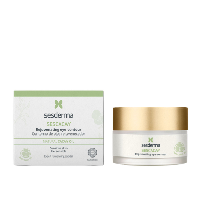 O Sesderma Sescacay Contorno de Olhos Rejuvenescedor hidrata, acalma e regenera a zona delicada do contorno ocular, atuando sobre olheiras, papos, rugas e flacidez. Com óleo de cacay, HP retinoato, silício orgânico, péptidos, fator de crescimento EGF, campanediol e pinanediol, promove firmeza, elasticidade e conforto diário da pele sensível.