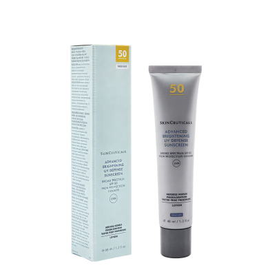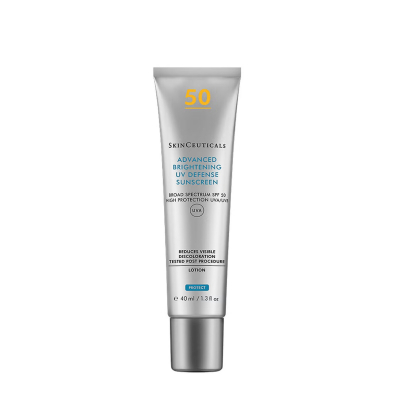 Com uma fórmula leve e multifuncional, o SkinCeuticals Advanced Brightening UV Defense SPF50 hidrata e protege a pele contra os efeitos da exposição solar, enquanto ajuda a reduzir manchas, descoloração e sinais visíveis de envelhecimento. Enriquecido com 1% de ácido tranexâmico e 2% de niacinamida, atua na uniformização do tom da pele, no equilíbrio cutâneo e na prevenção de danos futuros causados pelos raios UV, promovendo uma tez mais clara, luminosa e homogénea.