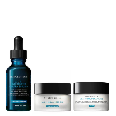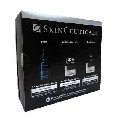 SkinCeuticals Coffret Firmeza e Efeito Lifting é composto por: 1 SkinCeuticals A.G.E. Interrupter Ultra Sérum (30ml), 1 SkinCeuticals A.G.E. Advanced Eye Creme (15ml) e 1 SkinCeuticals A.G.E. Advanced Interrupter Creme (15ml).
