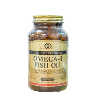 Solgar Ómega 3 Dupla Potência contém ácidos gordos essenciais para melhorar a saúde em vários aspetos.