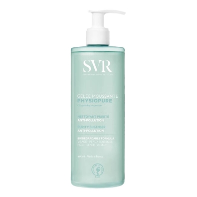 SVR Physiopure Gel de Limpeza Suave remove maquilhagem e impurezas, deixando a pele limpa, purificada e fresca.