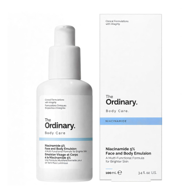 O The Ordinary Niacinamide 5% Face and Body Emulsion é uma emulsão multifuncional desenvolvida para ajudar a reduzir a aparência de manchas escuras e a uniformizar o tom da pele do rosto e do corpo.