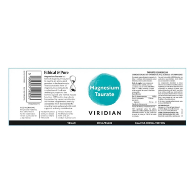 Envolvido em mais de 300 processos no corpo humano, o Taurato de Magnésio Viridian ajuda a manter o equilíbrio eletrolítico, apoia o sistema nervoso e contribui para a manutenção de ossos e dentes saudáveis.