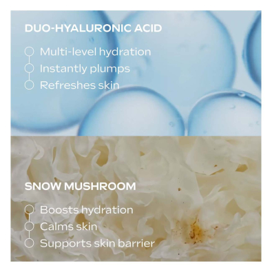 Ideal para todos os tipos de pele, este sérum combina ácido hialurónico, cogumelo Tremella, aloe vera e glicerina para hidratar profundamente, suavizar a textura da pele e promover um aspeto fresco, preenchido e luminoso.